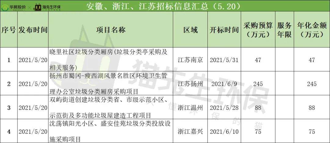 2021年5月20日,安徽、浙江、江蘇招投標(biāo)項(xiàng)目共4個(gè)。