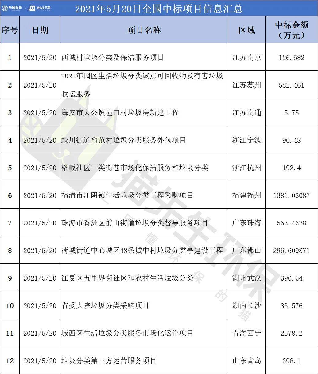 2021年5月20日,全國中標(biāo)項(xiàng)目共12個(gè)。