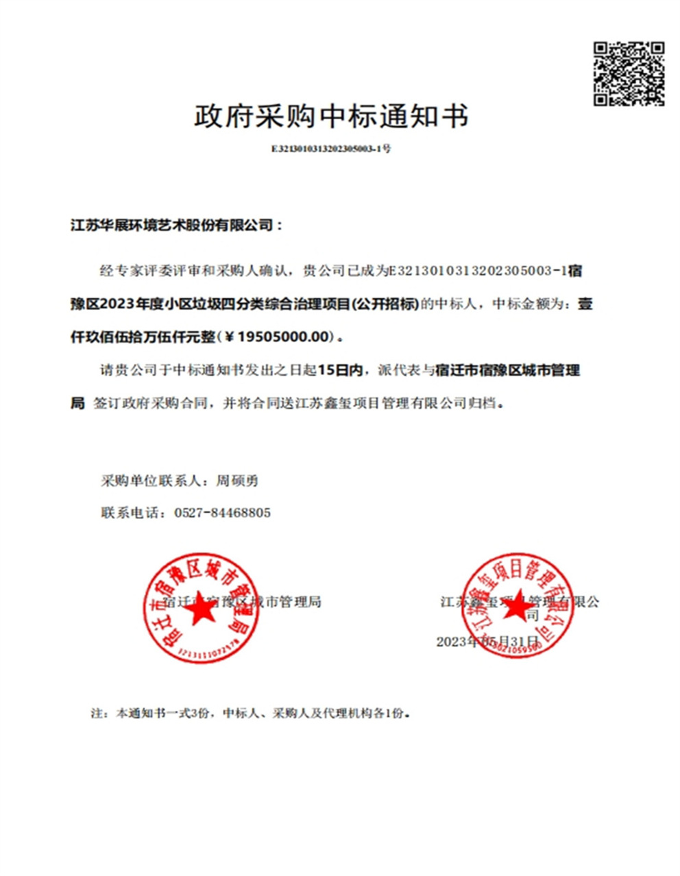 【中標(biāo)通知】龍港市垃圾分類收集房建設(shè)項目(標(biāo)項一)